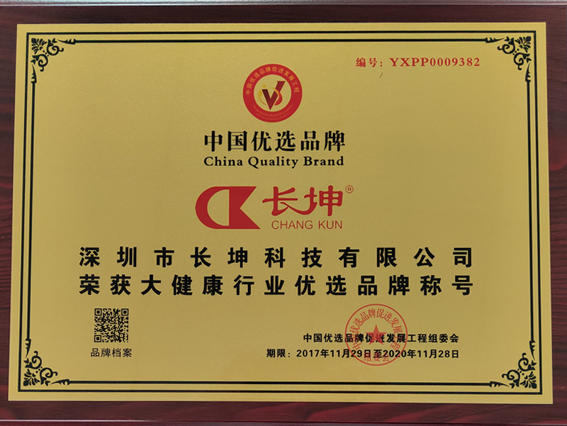 2017年12月,深圳市長坤科技有限公司成功被中國優(yōu)選品牌促進(jìn)發(fā)展工程選中,評選為“中國優(yōu)選品牌”,并授予其“大健康”行業(yè)優(yōu)選品牌稱號,以茲鼓勵。